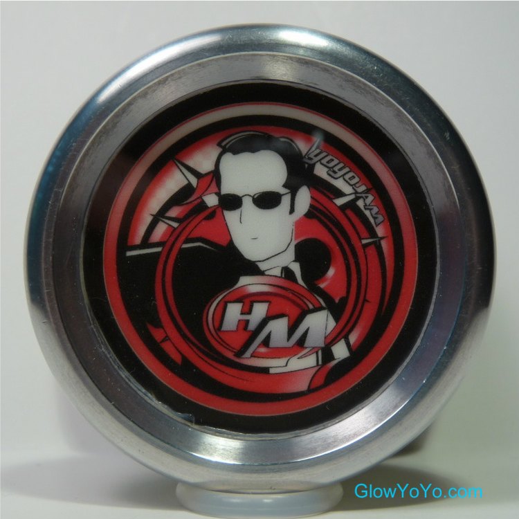 | description | The Hitman is a very popular YoYoJam model. It features metal weight rings and a double o-ring response system. This particular one is outfitted with special glow in the dark Agent Smith sidecaps. |